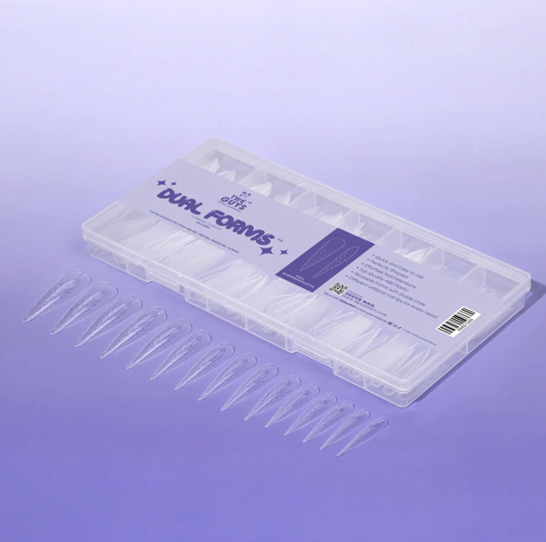 Dual forms are a versatile tool in nail enhancement, offering a quick and efficient way to create smooth, professional-looking nail extensions. These reusable molds come in various sizes and are designed to be pressed onto the nail after applying a nail product like Plex Gel, Poly Gel, Builder Gel, or Acrylic. The dual form shapes the product into a perfect curve and thickness, eliminating the need for extensive filing. Once cured or set, the form is easily removed, leaving behind a beautifully sculpted nail. Ideal for both beginners and professionals, dual forms simplify the nail extension process while delivering consistently flawless results.